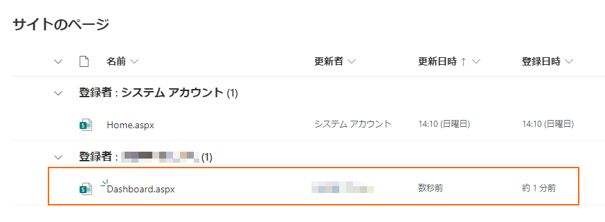 - サイトのページ Dashboard.aspx が実体
